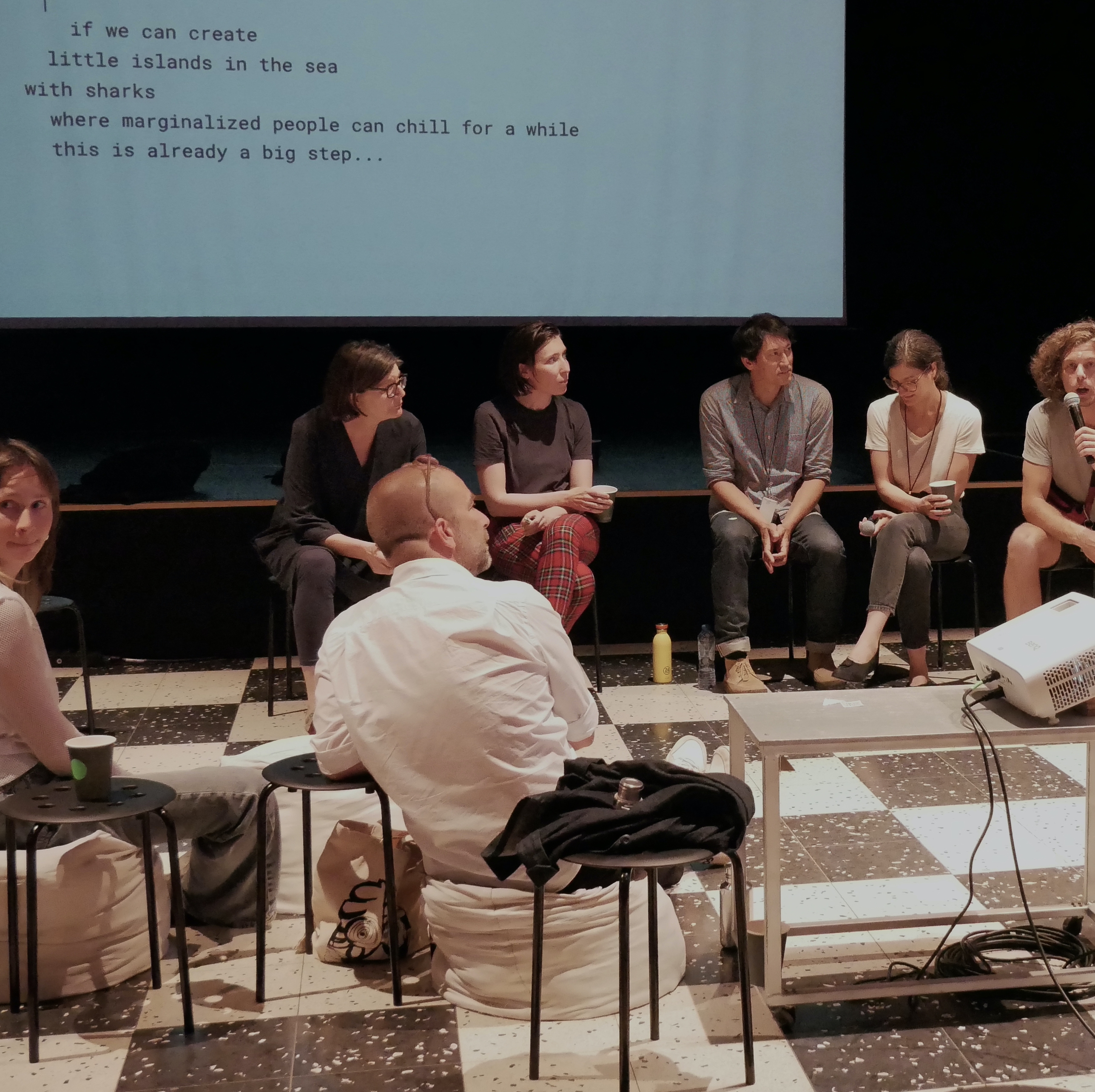 How are the distinct individual islands related to each other and what does this add to the common goals? Does being in relation and organizing collectively enable more autonomy of artistic practices, for example the ability to take a chance and fail, because there is a web of care to fall back upon, can we findstable ground as a community?
