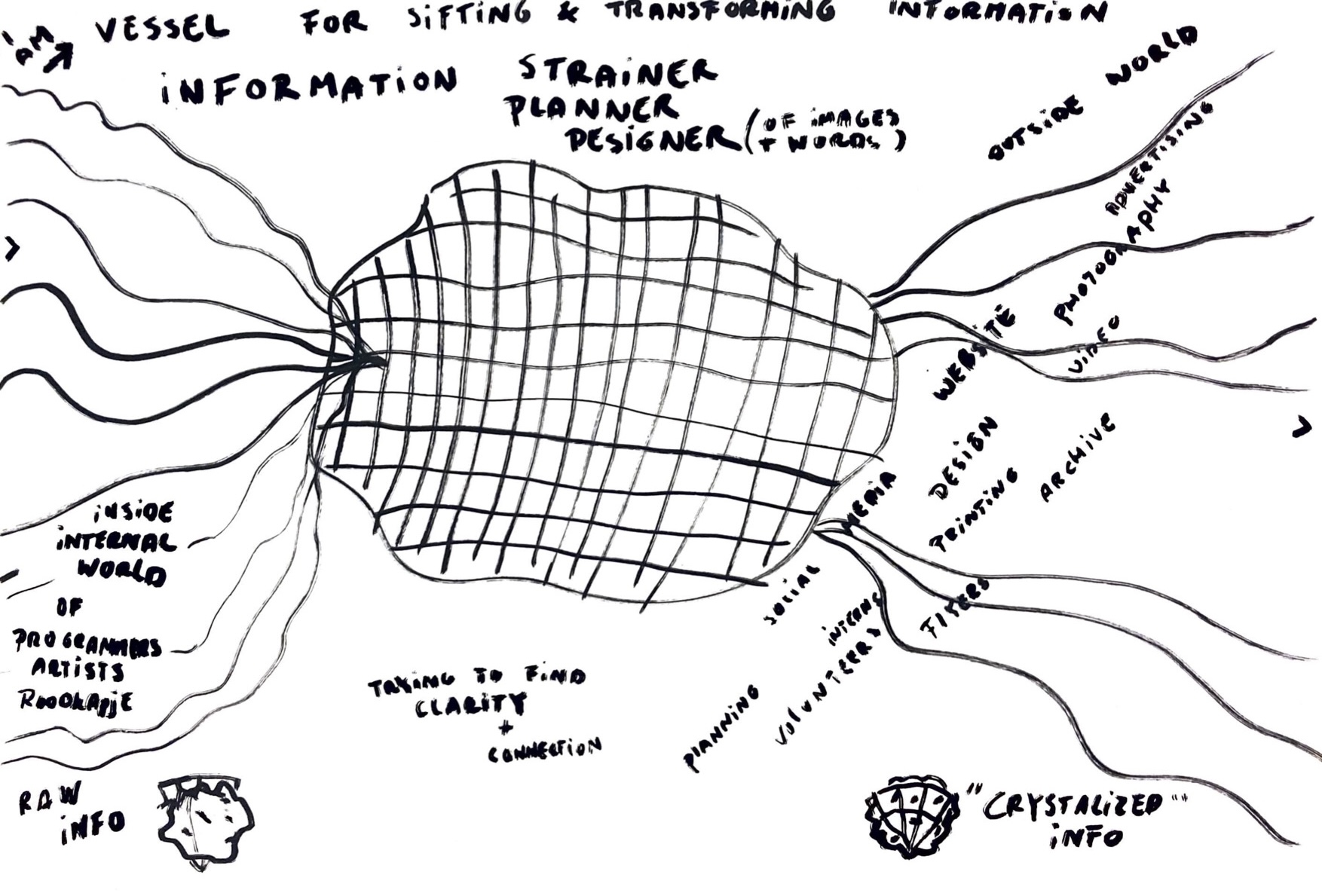 By drawing their practice, participants shift from explaining what they do to sensing how their practice is lived from within. Perspective plays a central role: where you place yourself changes what becomes visible. The exercise is playful rather than diagnostic, and reflective rather than conclusive. It opens up questions about agency, dependency, power, and care, and invites participants to imagine what might change if they were to occupy a different position within their own constellation.